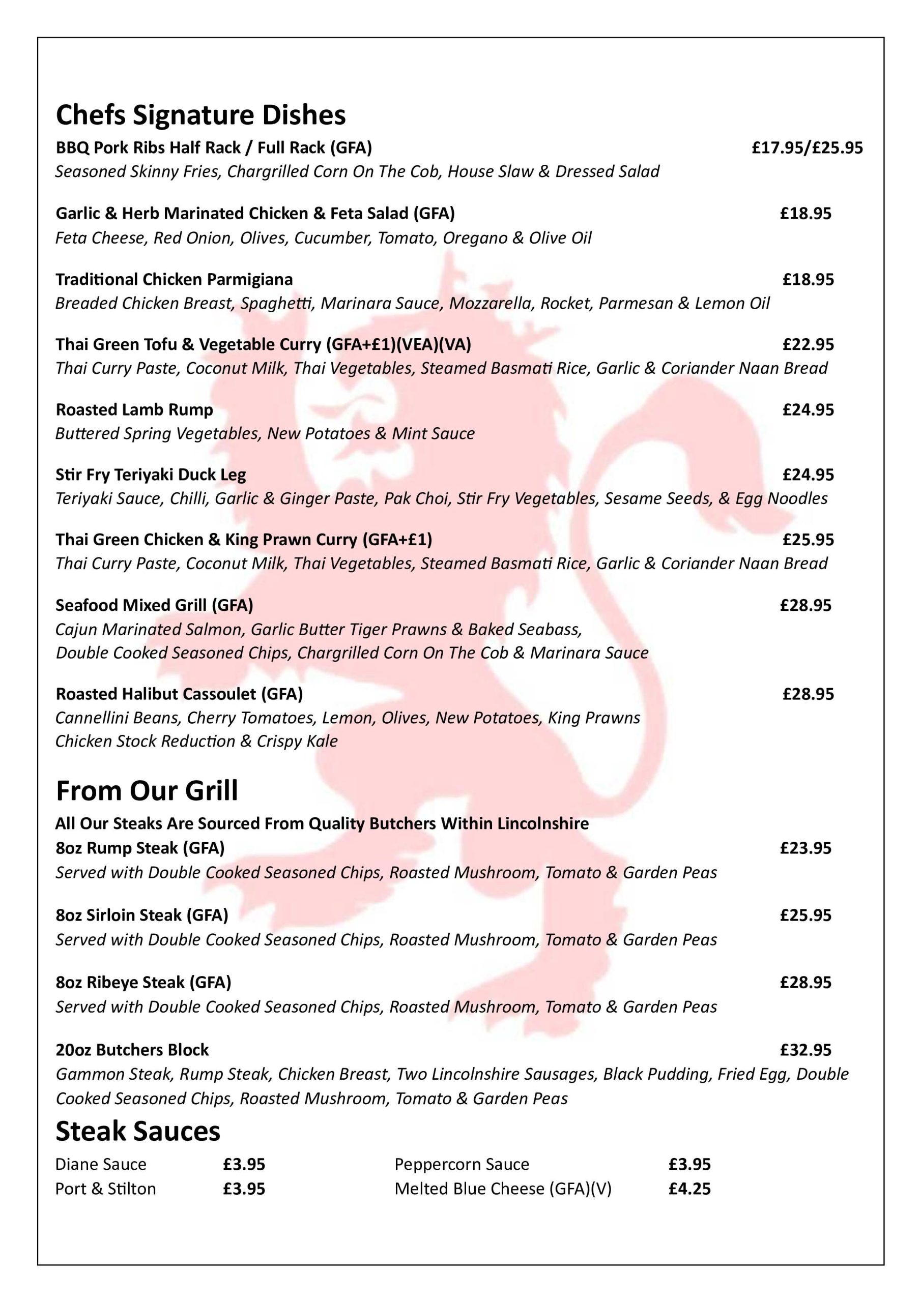 What make our menu great is the fresh produce we source from reputable local suppliers throughout Lincolnshire.