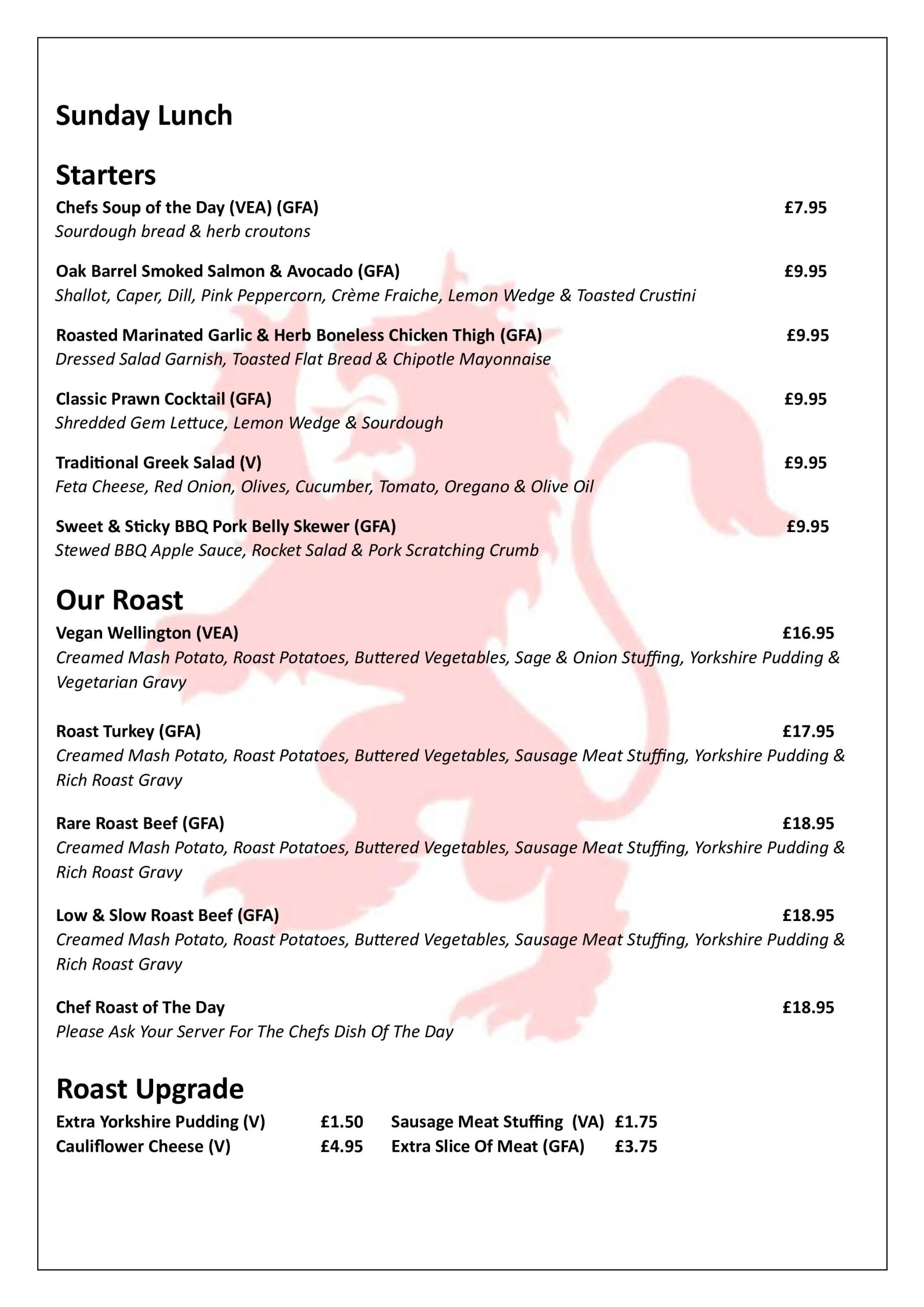 Enjoy Our Specialised Sunday Lunch Menu With A Range Of Fresh Dishes, Roasts & Specials.